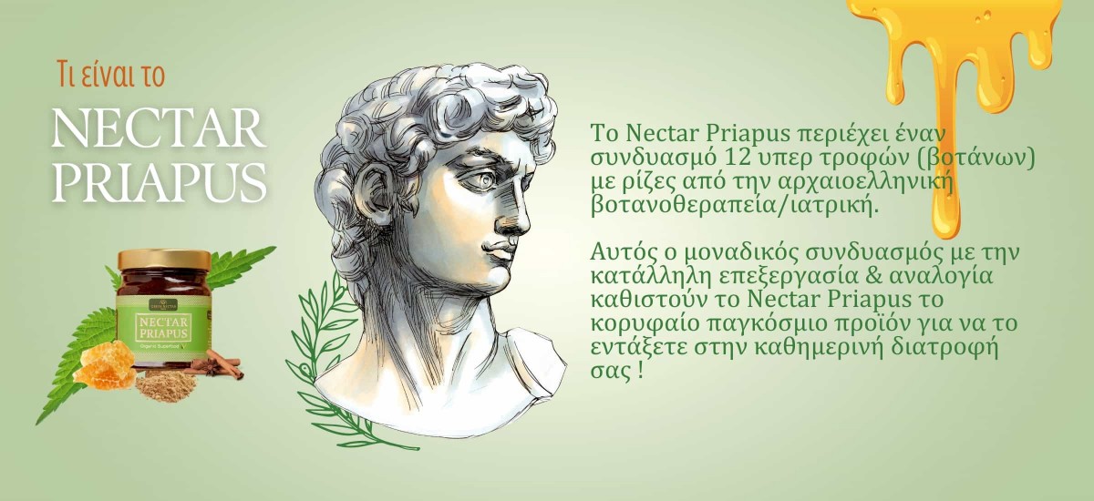 Το Nectar Priapus είναι μείγμα από βιολογικές τονωτικές υπερτροφές, βασισμένο σε αρχαία Ελληνική συνταγή *.