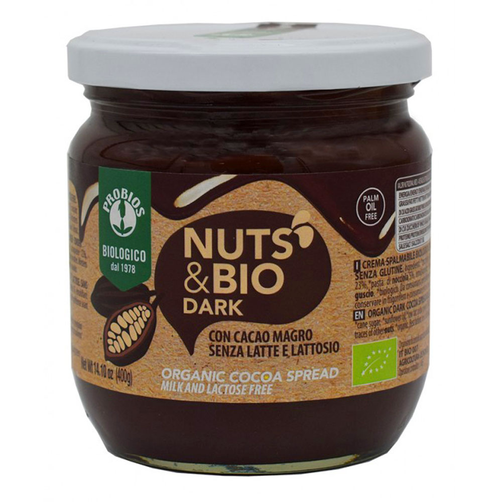 Probios Nuts and Bio Dark Cocoa Spread: Υγιεινή και εξαιρετικά νόστιμη πραλίνα φουντουκιού με κρέμα κακάο (μαύρη σοκολάτα), χωρίς γλουτένη! Γλυκιά γεύση με βάση το άπαχο κακάο που θα σας κερδίσει από την πρώτη στιγμή!